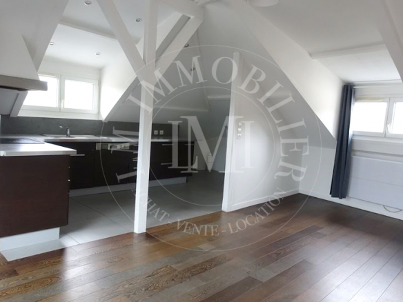 Au dernier étage d’une petite copropriété des années 30, très bel appartement mansardé de 3 pièces principales (45 m² carrez, 76 m² au sol), composé d’une entrée, un sur séjour parqueté avec balcon/terrasse offrant une très belle vue dégagée, une cuisine ouverte aménagée, deux chambres parquetées, buanderie, salle de bains, wc séparés. Une cave en sous-sol complète ce bien. Gare rive droite et commerces à pied. Disponible le 21/10/2024. DPE: E 322 Kwh/m²/an GES: B 10 kgco²/m²/an. Estimation des coûts annuels des énergies du logement entre 900 € et 1250 € (prix moyen des énergies indexé au 1er janvier 2021).
