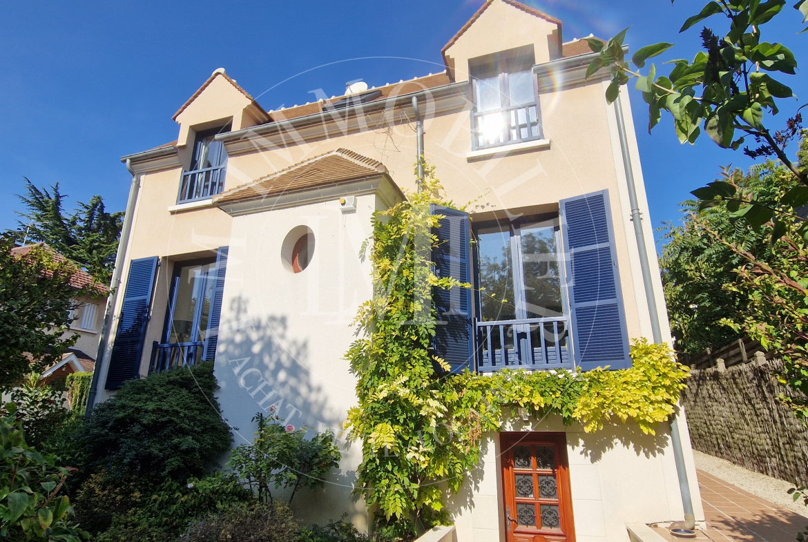 Nichée dans la verdure et le calme, tout proche du Parc de Saint-Cloud et du lycée international, très jolie maison de 7/8 pièces, composée d’une entrée avec placards, une très belle pièce de vie avec espace cathédrale et cheminée donnant accès à la terrasse et au jardin, une cuisine aménagée donnant également sur la terrasse, une chambre parquetée, wc séparés. A l’étage une très belle pièce palière cathédrale à usage de bureau ou de salle de jeux, trois chambres parquetées, une salle de bains avec wc, une salle d’eau. Au sous-sol, une pièces a usage de chaufferie/buanderie/rangements. wc séparés.
