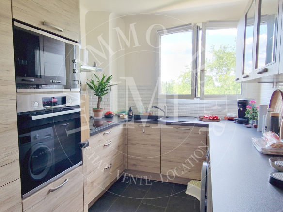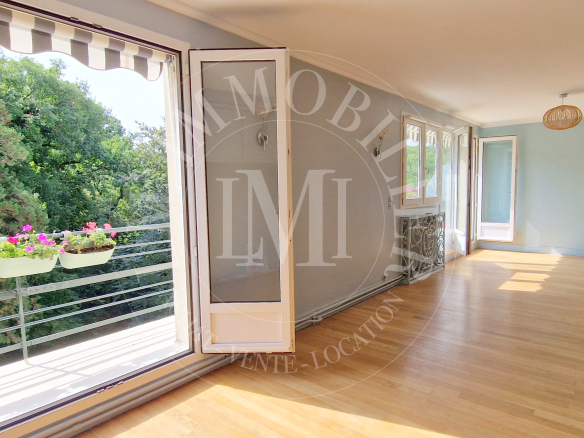 Exclusivité LM Immobilier Nicolas Le Marcis – Avec très belle vue dégagée, dans une résidence avec Parc recherchée, très bel appartement de 3 pièces en dernier étage, composé d’une entrée, un double séjour parqueté (2ème chambre possible facilement) et avec grand balcon sud/est, une cuisine indépendante aménagée, une grande chambre parquetée avec placards, une salle d’eau carrelée, wc séparés. Une grande cave en sous-sol complète ce bien très rare sur le secteur. Parking résidentiel.