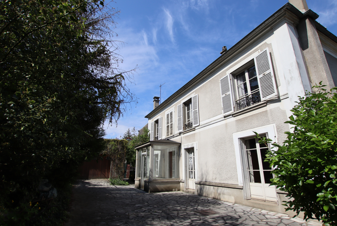 Jolie maison édifiée originellement vers 1850 sur un terrain de 628 m² environ et composée au rez-de-chaussée d’un entrée, un séjour avec cheminée (exposition sud/ouest), une cuisine indépendante, une chambre avec accès jardin, une salle de bains carrelée, wc séparés. Au premier étage, une pièce palière, deux chambres, wc séparés, rangements, une suite parentale parquetée composée d’une chambre, d’une salle de bains et d’un bureau (divers rangements). Au second niveau, des combles avec divers espaces de rangement. Sous-sol avec chaufferie et caves. Garage indépendant au début du terrain. Appentis dans le fond du jardin. Travaux à prévoir. Idéal famille nombreuse. Proche toutes commodités à pied (écoles/commerces/gares).